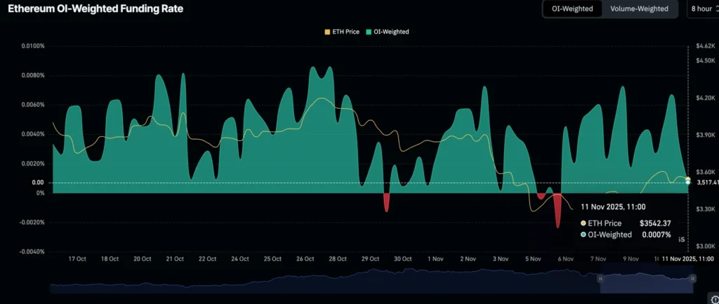 Retail participation also remains sluggish following the October 10 deleveraging event, which wiped out more than $19 billion in crypto assets in a single day. Bitcoin futures Open Interest has slipped to $68.37 billion, down from $71 billion on November 1 and a peak of $94.12 billion in October.