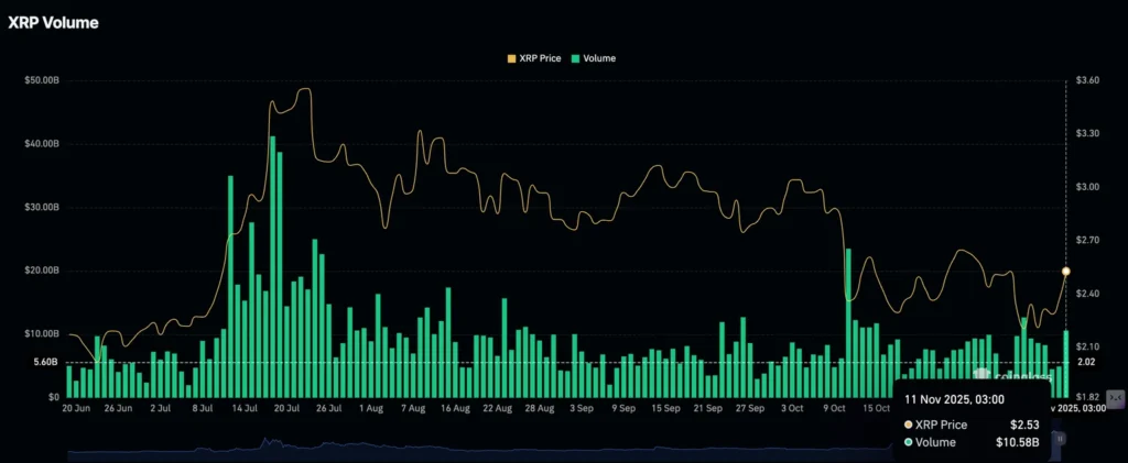 The trading volume also rose to $10.58 billion, indicating fresh capital inflows and elevated participation.