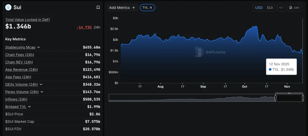 Sui Reclaims $2.00 as DeFi TVL Slides 15%